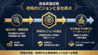 部長への昇格試験に特化したES(エントリーシート)の書き方と面接対策を解説。経営幹部に求められる全社視点、中長期戦略の語り方、課長との視座の違いを実例で比較。役員面接の突破法も。